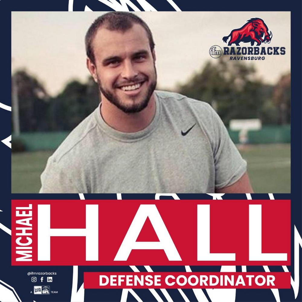 Michael Hall spielte schon 2013 für die Ravensburg Razorbacks und startete in der Turmstadt seine europäische Football Karriere. Nach Stationen in München und Bielefeld wechselte er 2016 zu den Bialystok Lowlander wo er als Spielertrainer erste Erfahrungen als Defensive Koordinator sammeln konnte. 2017 zog es Hall dann in seine aktuelle Wahlheimat Norwegen, wo er bei den Eidsvoll 1814s als Headcoach die Geschicke des Teams bestimmte.