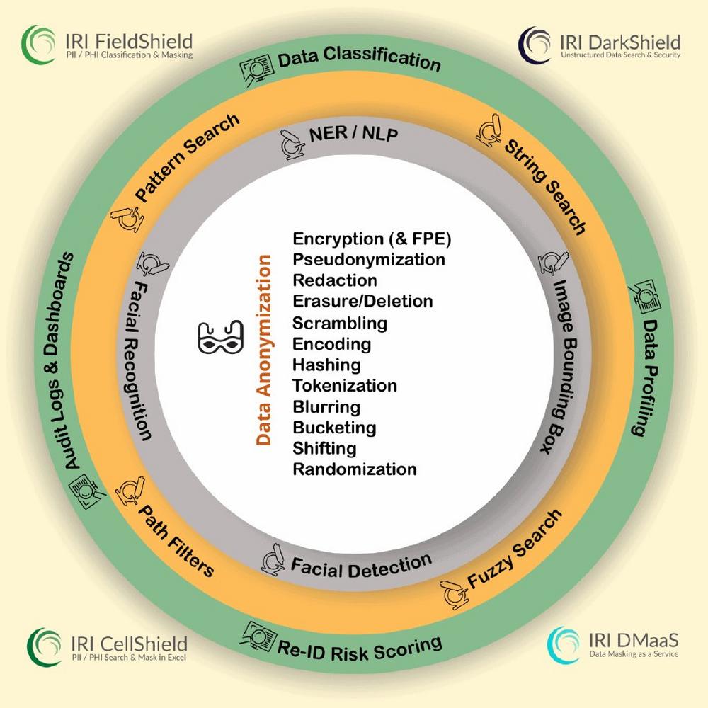 - Datenmaskierung als Service: IRI DMaaS-Ingenieure in den USA und im Ausland übernehmen für Sie die Klassifizierung, Auffindung und Deidentifizierung von PII.