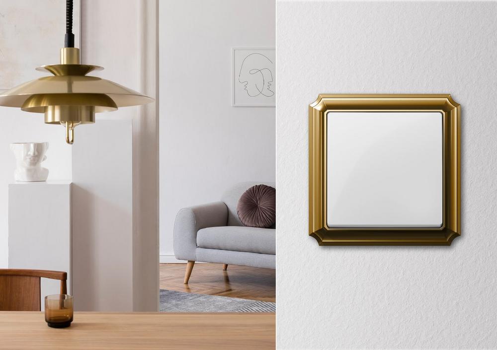 Das neue Rahmendesign aus dem Hause Merten überzeugt nicht nur durch eine außergewöhnliche Optik, sondern auch durch umfangreiche Funktionsmöglichkeiten – und setzt ganz nebenbei die Elektroinstallation gekonnt in Szene. D-Antik eignet sich besonders für Wohnambiente mit historischem Charakter, stilvoll eingerichtete Wohnungen, gehobene Eigenheime oder Hotels. Ohne optischen Stilbruch bildet das Rahmendesign das Pendant zu edlen Stoffen, erlesener Dekoration und Mobiliar mit Geschichte. Passend dazu ist D-Antik in hochwertigen Materialien und verschiedenen Farben erhältlich: Ganz klassisch in Lotosweiß hält sich der Schalter dezent im Hintergrund. Aus Echtmetall in Moccametallic gefertigt, verkörpert D-Antik edle Eleganz. Opulenz mit Wow-Charakter verspricht das Modell mit 24 Karat Goldveredelung.