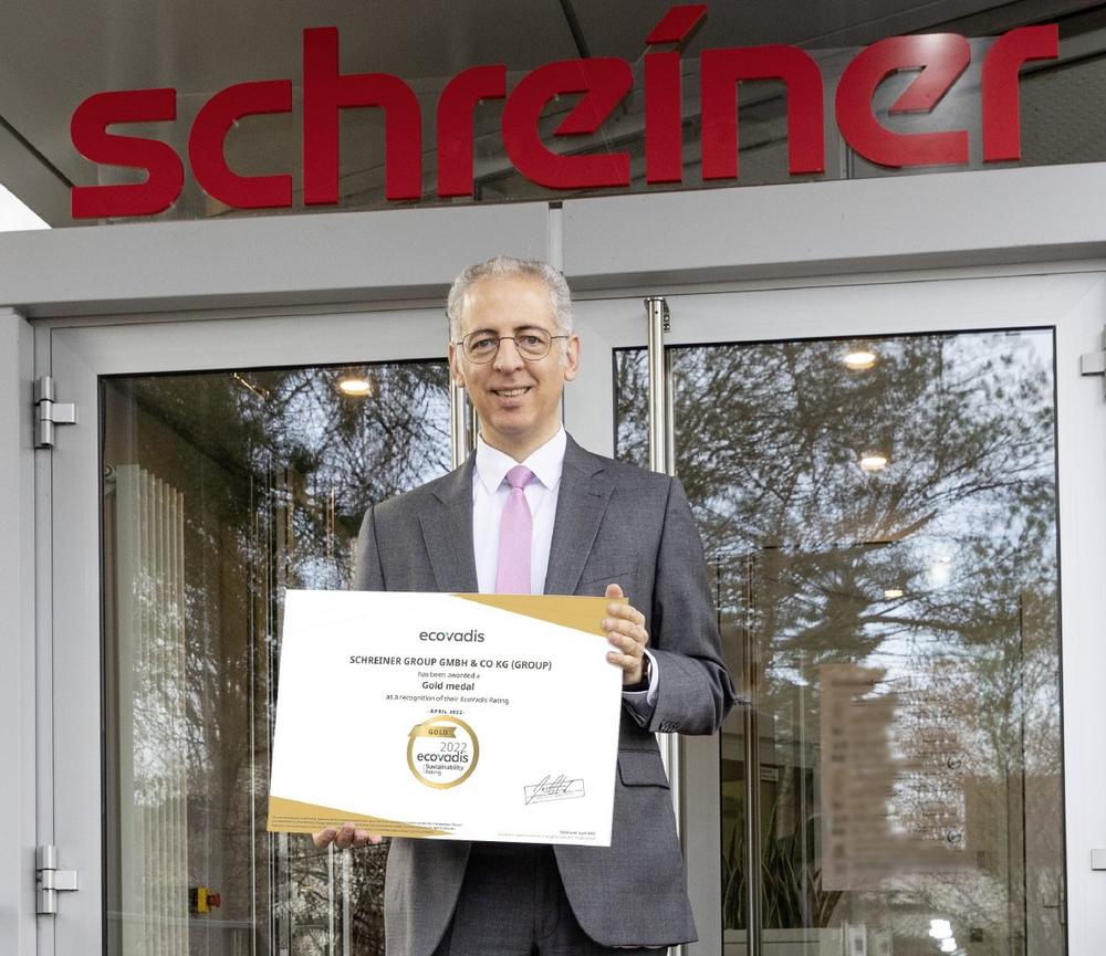 Immer mehr Unternehmen wollen wissen, wie nachhaltig ihre Lieferanten sind. Schließlich fließt auch das Handeln der Zulieferer in die eigene Beurteilung mit ein. Inzwischen gibt es zahlreiche Dienstleister, die sich auf eine neutrale Bewertung von Unternehmen in Bezug auf Nachhaltigkeit spezialisiert haben. Der größte und bedeutendste ist EcoVadis. Rund 40 Kunden der Schreiner Group greifen auf sein Urteil zurück. Auch in diesem Jahr wurde das Familienunternehmen erneut mit einem Gold-Rating ausgezeichnet. „Ich freue mich sehr über die hervorragende Beurteilung“, erklärt Geschäftsführer Roland Schreiner. „Zeigt sie doch, dass wir wirklich Verantwortung für Mensch und Natur übernehmen.“