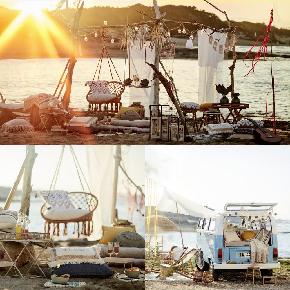DEPOT macht das Glamping-Glück perfekt, kombiniert Kissenhüllen wie Bordo di Macrame und Dream, lässt Traumfänger wie Van baumeln und Solar-Lichterketten leuchten, allen voran das Lichtobjekt Trockenblume und die Lichterkette Kugeln. Zum stimmungsvollen Ambiente trägt auch das schöne Windlicht More bei. Makramee ist und bleibt auch draußen magisch: Die samtweiche Decke Border und die schmuckvolle Girlande runden den Boho-Style ab.