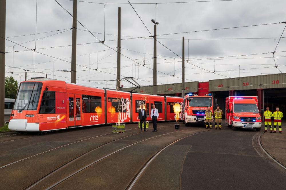 „Ich freue mich sehr, dass diese Stadtbahn nicht nur für unser 150. Jubiläum, sondern auch für die enge und partnerschaftliche Verbindung zwischen der Rheinbahn und der Feuerwehr Düsseldorf steht“, so Feuerwehrchef David von der Lieth. „Einen besonderen Dank für dieses Geburtstagsgeschenk möchte ich an die Rheinbahn richten. Wir sind sehr stolz, dass wir nun auf diese besondere Art täglich im Stadtbild zu sehen sind! Allen Fahrgästen der Rheinbahn viel Spaß bei der Fahrt mit dieser besonderen Bahn!“