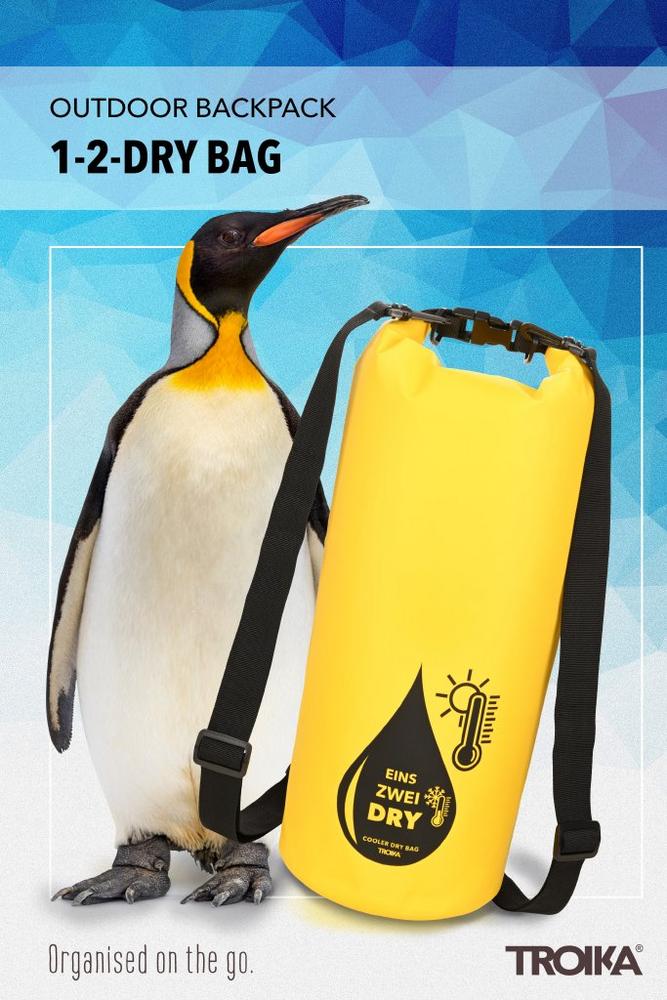 Anyone who is active outdoors needs a real buddy to whom you can entrust everything. The robust 1–2–DRY BAG has a capacity of ten litres and can be loaded with up to 10 kg. Everything inside stays dry in accordance with IPX6, thanks to heat-sealed seams and a practical roll-top closure. And stays cool for several hours thanks to the effective thermal lining. Backpack or bag? Just take both!