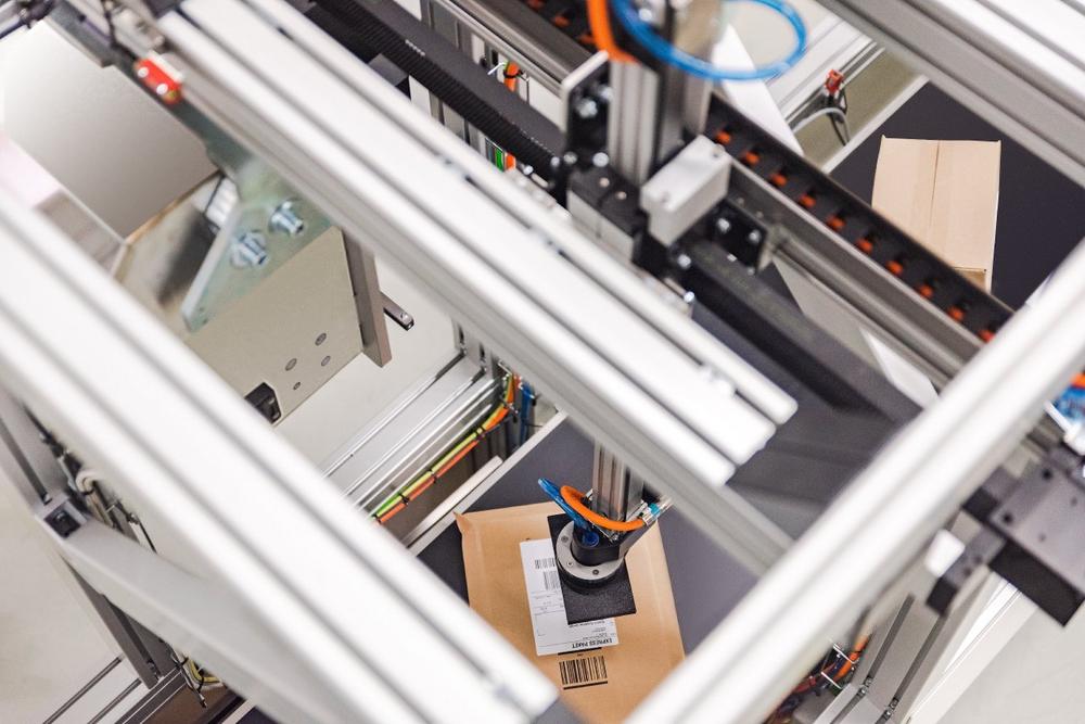 Im 3D-Etikettierportal wurde die bewährte Etikettiertechnik bekannter Serien verbaut. Daher kann die High End-Versandlinie in kürzester Zeit eine sehr hohe Menge Produkte kontinuierlich (ohne Stopp) etikettieren.