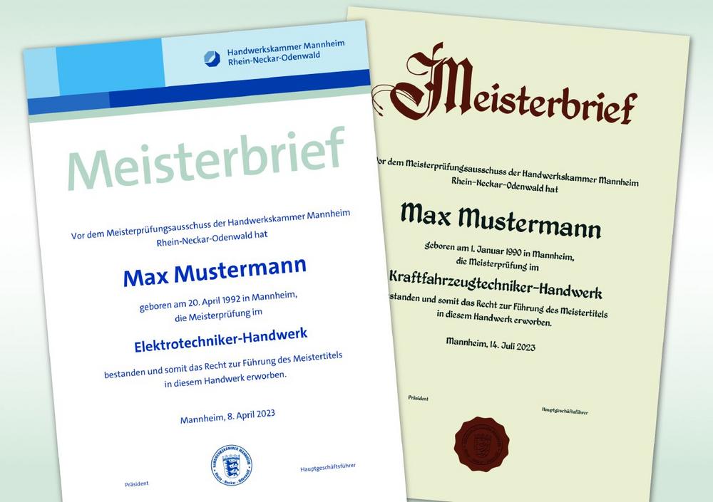 Interessenten können den traditionellen Meisterbrief über die Internetseite der Handwerkskammer Mannheim Rhein-Neckar-Odenwald auf www.hwk-mannheim.de/meisternachweise bestellen. Weitere Informationen rund um alle Meister-Themen bei Alexander Dirks, Telefon 0621 18002-140 oder E-Mail: alexander.dirks@hwk-mannheim.de.