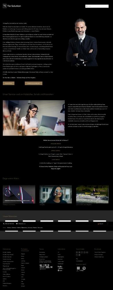 Die Image Seite www.tiesolution.org von Tie Solution ist eine umfassende Informationsplattform für B2B Kunden wie Werbemittelhändler, Industrie Kunden, Handelskunden, Werbeagenturen und andere. Sie bietet Informationen über die Produktionsprozesse der von Tie Solution hergestellten Accessoires wie Halstücher, Schals, Krawatten und ermöglicht den Kunden, Angebote direkt anzufordern.