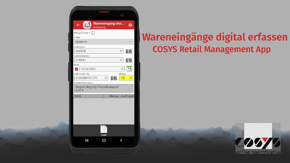 COSYS hat eine innovative App-Lösung entwickelt, die Ihre Retail Filialen in vielerlei Hinsicht unterstützt. Diese digitale Lösung erleichtert und beschleunigt alltägliche Prozesse und Aufgaben. Ihre Mitarbeiter können mit ihrem Smartphone oder MDE-Gerät, das COSYS gerne zur Verfügung stellt, Barcodescans durchführen und somit schnell und einfach Wareneingänge, MHDs und Bestellungen erfassen. Alle erfassten Daten werden sicher in der COSYS Cloud gespeichert und können über eine integrierte Schnittstelle automatisch an Ihr ERP-System weitergeleitet werden. Die Schnittstelle ermöglicht einen Austausch von Bestands-, Artikel- und Bestelldaten. Bei der Warenannahme erhalten Ihre Mitarbeiter eine digitale Liste mit allen Positionen und Mengen der Bestellung, die sie nacheinander per Scan aufnehmen und als geliefert hinterlegen können. Unvollständige Lieferungen werden somit schnell erkannt. Mit der COSYS App-Lösung wird die Arbeit in Ihren Retail Filialen effizienter und einfacher.