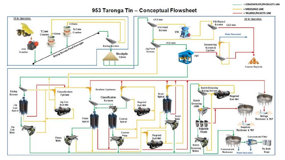 Thomas Buenger, CEO von First Tin, sagte: "Diese Aufbereitungstests haben einen klaren Weg aufgezeigt, um ein verkaufsfähiges Zinnkonzentrat aus der Zinnlagerstätte Taronga mit sehr einfachen, billigen, handelsüblichen Aufbereitungsanlagen wie Setzmaschinen, Spiralen und Rütteltischen herzustellen. Ein qualitativ hochwertiges Konzentrat kann mit sehr einfachen Geräten zu vernünftigen Gewinnungsraten produziert werden, was zu niedrigeren Kapital- und Betriebskosten führt.