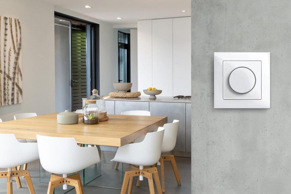 Der Multiwire LED Drehdimmer-Einsatz kommt mit einer geringen Mindestlast – 3 Watt bei einer Zwei-Draht-Installation und 0 Watt bei einer Drei-Draht-Installation mit Neutralleiter – zurecht. Dies ermöglicht die Einstellung einer sehr niedrigen Mindesthelligkeit sowie eine stabile Helligkeitseinstellung ohne Flackern, Brummen oder Dimmaussetzern. Die Soft-Start-Funktion erlaubt ein sanftes Einschalten. Dank seiner robusten Konstruktion und der Verwendung hochwertiger Materialien zeichnet sich der Dimmer zudem durch eine hohe Langlebigkeit und Zuverlässigkeit aus. Darüber hinaus ist er mit einem Kurzschluss-, Überlastungs- und Überhitzungsschutz der Schutzart IP20 ausgestattet, der die Sicherheit der Beleuchtungsanlage gewährleistet.