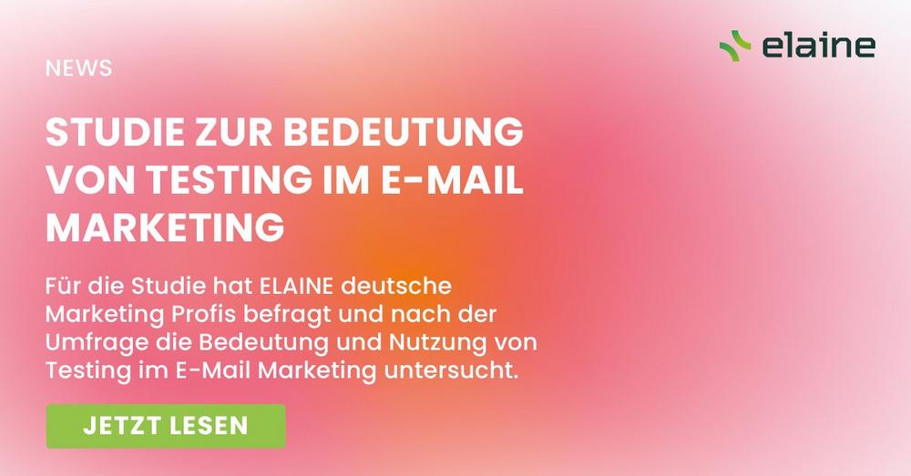 „Die Optimierung durch Tests ist ein bewährtes Verfahren im E-Mail-Marketing. Erfolgreiche Tests erfordern weder umfangreiche Kundendaten noch komplexe Data-Analytics-Mechanismen. Ein einfacher A/B-Test kann bereits die KPIs verbessern. Testing lohnt sich immer!„, kommentierte Stefan von Lieven, CEO von ELAINE technologies GmbH.