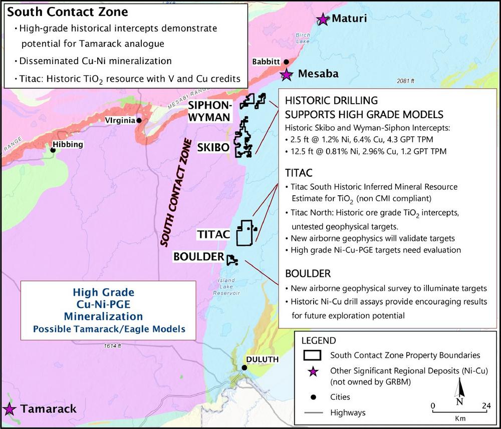 David Suda, CEO stated: “The Company’s recent site visit and re-interpretation of existing data has increased our confidence that the properties in the SCZ (South Contact Zone) in Minnesota are well mineralized. It is a rare opportunity to see such clear, yet underexplored targets in an area with historically rich polymetallic endowment. We look forward to rapidly and continuously advancing the Company’s leverage to the increasing global demand for ‘green metals’”.