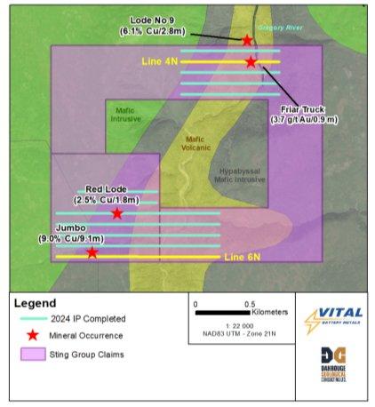 Adrian Lamoureux, Chief Executive Officer und President von Vital, nahm dazu wie folgt Stellung: „Die IP-Untersuchung bestätigt wiederum, dass in dem Konzessionsblock Jumbo-Red Lode potenziell eine Mineralisierung des VMS-Typs lagert, und wir sehen der Prüfung der Anomalien, die an beiden Seiten des Konzessionsblocks entdeckt wurden, im Rahmen unseres bevorstehenden ersten Bohrprogramms mit Spannung entgegen.“