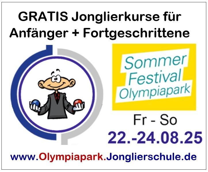 Wann welche GRATIS-Kurse stattfinden, findet man hier: https://olympiapark.jonglierschule.de