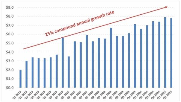 Diese Basis wiederkehrender Umsätze bietet starke Cashflow-Sichtbarkeit und stützt die Rekordaussichten des Unternehmens für das Kalenderjahr („CY“) 2025. Diagramm 2.