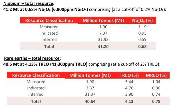 (1) Bitte beachten Sie Tabelle 1 und unsere ASX-Mitteilung vom 1. April 2025 „High-Grade Niobium and REE JORC Resource for Araxá“ für weitere Informationen zur Mineralressourcenschätzung.