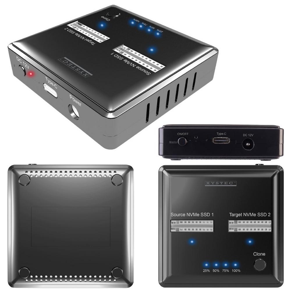 Xystec 2er-Set Dual-Bay Clone-Dockingstation für NVMe M.2 SSD-Festplatten