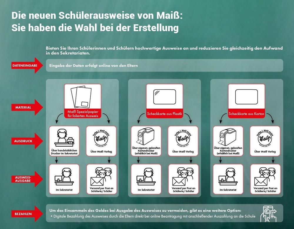 Die Abwicklung des gesamten Prozesses erfolgt über das Ausweis-Modul des Maiß Schul-Portals, für das Schulen sich beim Maiß Verlag registrieren lassen können.