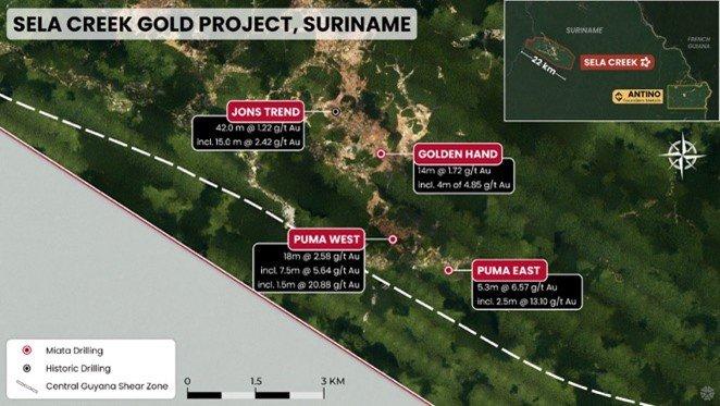“These latest results highlight excellent progress at Sela Creek,” stated Jaap Verbaas, CEO of Miata Metals. “At Puma, we are seeing bonanza grade mineralization in bedrock directly tied to artisanal workings, which provides us with valuable structural insights to guide follow-up drilling. At Golden Hand, broader mineralized halos with higher-grade cores point to excellent potential for both grade and width. With four confirmed targets now showing the types of grades and widths typical of orogenic gold systems, we are confident that Sela Creek has the potential to host multiple, gold-bearing pits. Our technical team is doing excellent work simultaneously proving up multiple targets as we advance drilling, trenching, and auger sampling to unlock further discoveries across this underexplored gold field.”