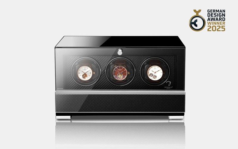 Die preisgekrönte Kollektion CLASICO Premium zeichnet sich aus durch eine klare Linienführung, hochwertige Materialien wie Echtcarbon, ein mit mehrschichtigem Klavierlack veredeltes Gehäuse und ein intelligentes Touchdisplay. Neben dem eleganten Design überzeugt der Uhrenbeweger durch technische Innovationen: ein flüsterleiser Motor, individuell programmierbare Rotationsmodi und eine dezente Beleuchtung sorgen für maximale Funktionalität und eine optimale Präsentation der Automatikuhren.