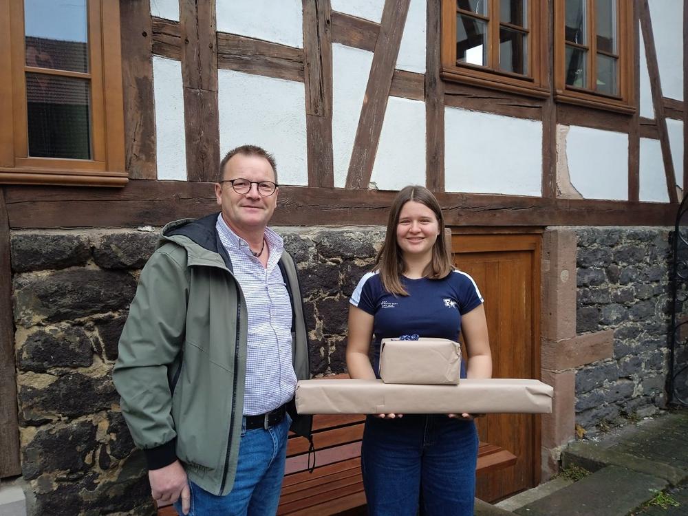 Über einen Projektor und eine Leinwand kann sich Elisabeth Kinscher freuen, die sich im Rahmen der Ausbildungsmesse an einem Gewinnspiel des Vogelsberger Jugendamtes beteiligt hatte. Alexander Weil vom Sachgebiet Kinder- und Jugendbeteiligung des Jugendamtes, überreichte ihr jetzt den Hauptpreis. Dieses Sachgebiet war mit einem eigenen Stand auf der Ausbildungsmesse in der Alsfelder Hessenhalle vertreten. Unter dem Motto ,,Mitdenken. Mitreden. Mitgestalten.“ stellten die Mitarbeiter des Jugendamtes ihre Arbeit vor und kamen mit den Jugendlichen ins Gespräch, um zu erfahren, welche Themen sie bewegen. Auf seiner Mitmachkarte konnten die jungen Besucher nicht nur an einem Gewinnspiel teilnehmen, sondern auch ihre Wünsche und Ideen für zukünftige Aktionen, Fahrten und Projekte äußern. Die Vielfalt der Rückmeldungen war groß und reichte von Ausflügen in Freizeitparks über Reisen ins Ausland bis hin zu Workshops zu den Themen Social Media, Fragen des Alltags oder Politik.