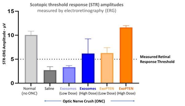 Die Studie wurde in Zusammenarbeit mit dem Team von Prof. Ygal Rotenstreich am Goldschleger Eye Institute des Sheba Medical Center, einem der weltweit führenden Krankenhäuser (i), durchgeführt. Sie zeigte, dass die biologische Aktivität von ExoPTEN mit höheren Dosierungsstufen bei Tieren mit Sehnervverletzung zunimmt, was zu einer konsistenten und messbaren Wiederherstellung der Sehfunktion führt. Die Ergebnisse zeigen, dass die regenerative Wirkung von ExoPTEN reproduzierbar, quantifizierbar und dosisabhängig ist.