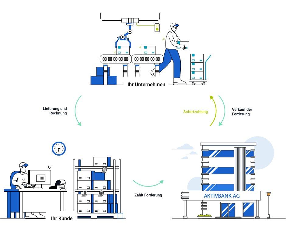 Auch für mittelständische Unternehmen bieten Factoring Banken wie die AKTIVBANK AG mit dem regelmäßigen Ankauf offener Forderungen eine Alternative zu Zahlungsverzug, Mahnung, Klage und schlimmstenfalls Zahlungsausfall. Beim modernen Factoring kauft der Factor – ein Factoring Institut wie die AKTIVBANK AG – offene Forderungen im Sinne einer Vorfinanzierung des ausstehenden Rechnungsbetrags. Nachdem ein Gläubiger gegenüber dem Factor eine begründete Forderung gegenüber einem Kunden (Debitor) nachgewiesen hat, wird vom Factoring Institut zuerst die Bonität des Debitors geprüft. Dies ist erforderlich, da der Factor mit der Forderung auch das Ausfallrisiko übernimmt. Nach positiver Prüfung kauft die Factoring Bank die Forderung und übernimmt ab diesem Zeitpunkt alle damit verbundenen Aufgaben, wie das Debitorenmanagement und alle Risiken. Das Unternehmen bekommt in der Regel innerhalb 24 Stunden den Bruttorechnungsbetrag ausgezahlt.