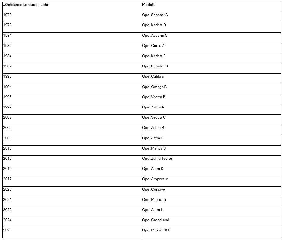 Opel und das „Goldene Lenkrad“: Alle 22 Sieger aus Rüsselsheim