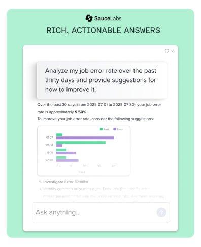 Als branchenweit erster KI-Agent, der speziell für Quality Intelligence im Software-Engineering entwickelt wurde, verwandelt Sauce AI for Insights einen der kritischsten Engpässe in der modernen Softwareentwicklung in einen strategischen Vorteil: Die überwältigende Menge an Testdaten, die bisher die Entscheidungsfindung verlangsamte und Releases verzögerte, steigert nun die Produktivität der Entwickler und deren Engineering-Effizienz.