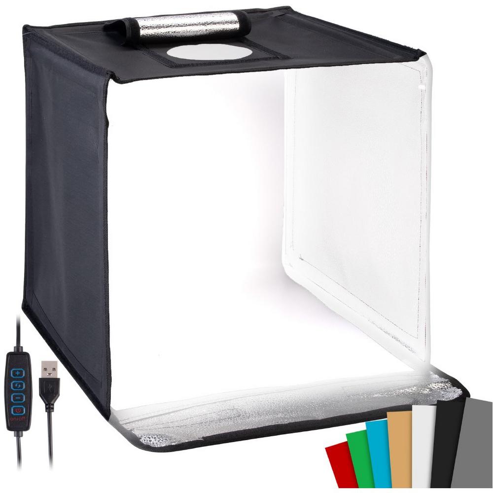 Somikon Fotobox zum Fotografieren, faltbar, mit LED-Licht, 60 x 60 x 60 cm