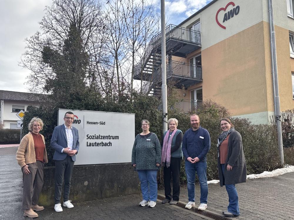 Lange und selbstständig im gewohnten Umfeld und in den eigenen vier Wänden leben, das ist gerade im Alter der Wunsch vieler Menschen. Doch die Erfüllung des Wunsches ist nicht allen vergönnt. „Gerade dann ist es ein Gewinn, dass es Einrichtungen wie das AWO Sozialzentrum in Lauterbach gibt“, sagt Erster Kreisbeigeordneter und Sozialdezernent Patrick Krug beim Besuch am Bilsteinweg in Lauterbach. Dort trifft er die Einrichtungsleitung Sylvia Motz-Sattler, Pflegedienstleiter Christoph von Keitz, Serviceleitung Heidrun Wittmann, Sozialdienstleitung Loreen Reul sowie Silvia Bergmann aus der Verwaltung zum Gespräch.