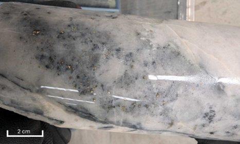 – 309 g/t Au & 0.03% Sb over 0.47 m from 650.77 m (visible gold shown in Figure 1) - The hole intersected multiple vein sets beyond the current exploration target, expanding the known extent of the mineralized system and continuing to link mineralization from Golden Dyke across to Christina