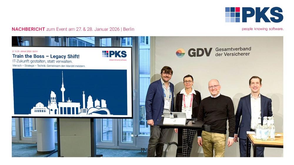 Mit dem zweitägigen Event „Train the Boss – Legacy Shift 2026“ hat die PKS Software GmbH am 27. und 28. Januar 2026 in Berlin einen branchenübergreifenden Dialog zur Zukunft geschäftskritischer IT-Systeme initiiert. Unter dem Leitmotiv „IT-Zukunft gestalten statt verwalten“ diskutierten Entscheider aus Unternehmen, Verbänden und IT-Organisationen, wie Legacy-Systeme strategisch weiterentwickelt werden können – technologisch, organisatorisch und kulturell.
