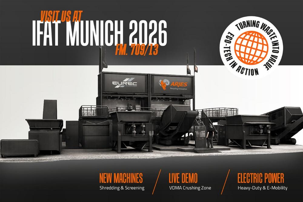 At the outdoor exhibition area of Messe München, ARJES and EuRec will showcase their technologies at stand FM.709/13 with a significantly larger exhibition stand compared to IFAT 2024. Visitors can expect a comprehensive overview of modern shredding and processing technologies as well as new solutions for integrated recycling processes.