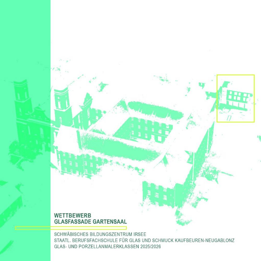 Der Vision eines weiteren Ortes für Kunst am Bau und der finanziellen Unterstützung des Vereins zur Förderung der Staatl. Berufsfachschule für Glas und Schmuck ist es zu verdanken, dass elf Ideen dazu entwickelt werden konnten. Diese sind vom 24. März bis 22. Mai im Foyer der Neuen Küferei von Kloster Irsee zu sehen – in Form von Musterscheiben, Fotosimulationen und in Ausschnitten aus der Entwurfsphase.