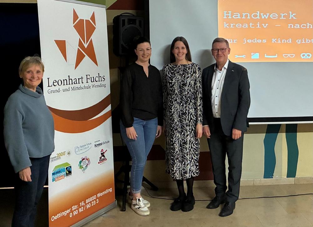 Zum Auftakt der diesjährigen Reihe hat Landrat Stefan Rößle persönlich am ersten der zehn Elternabende in der Leonhardt-Fuchs-Gesamtschule in Wemding über das Projekt und seine Bedeutung für die Region gesprochen. Stefanie Estner, die seit Jahren im heimischen Familienbetrieb Holzbau Hönle verantwortlich für Projektleitung und Vertrieb ist, gab den anwesenden Eltern einen Einblick in die spannenden Karrieremöglichkeiten im Zimmererhandwerk.