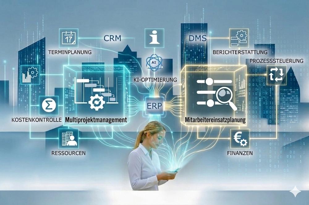„Auch Angebote können in die Planung einbezogen werden. Überlastungen einzelner Mitarbeiter oder Ressourcenpools werden sofort sichtbar und lassen sich mithilfe der integrierten Funktionen schnell ausgleichen“.