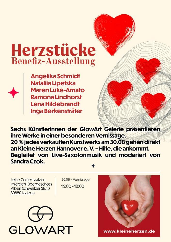 Die GlowArt Galerie lädt von 15:00 bis 18:00 Uhr zu einer besonderen Vernissage unter dem Motto „Herzstücke“ in das Leine Center Laatzen ein. Sechs herausragende Künstlerinnen präsentieren ihre Werke – […]