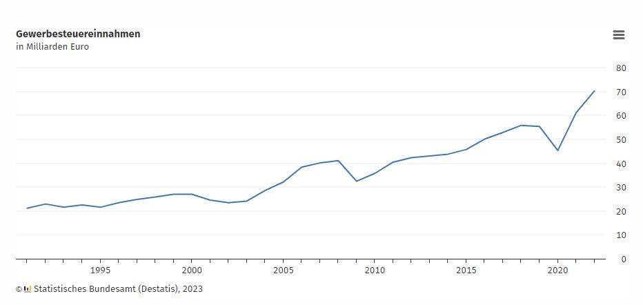 Gewerbesteuereinnahmen 2022 auf neuem Höchststand